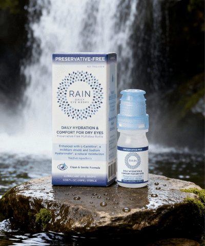 Most multidose bottles rely on hidden preservatives to stay “sterile.” Ours doesn’t. RAIN™ uses a specially designed multidose system that keeps every drop clean — without harsh chemicals or fake “gentle” preservatives. That means you can use it every single day — without sting, irritation, or chemical build-up. It’s dry eye relief that finally feels clean, safe, and sustainable. See and feel the Rain difference today!