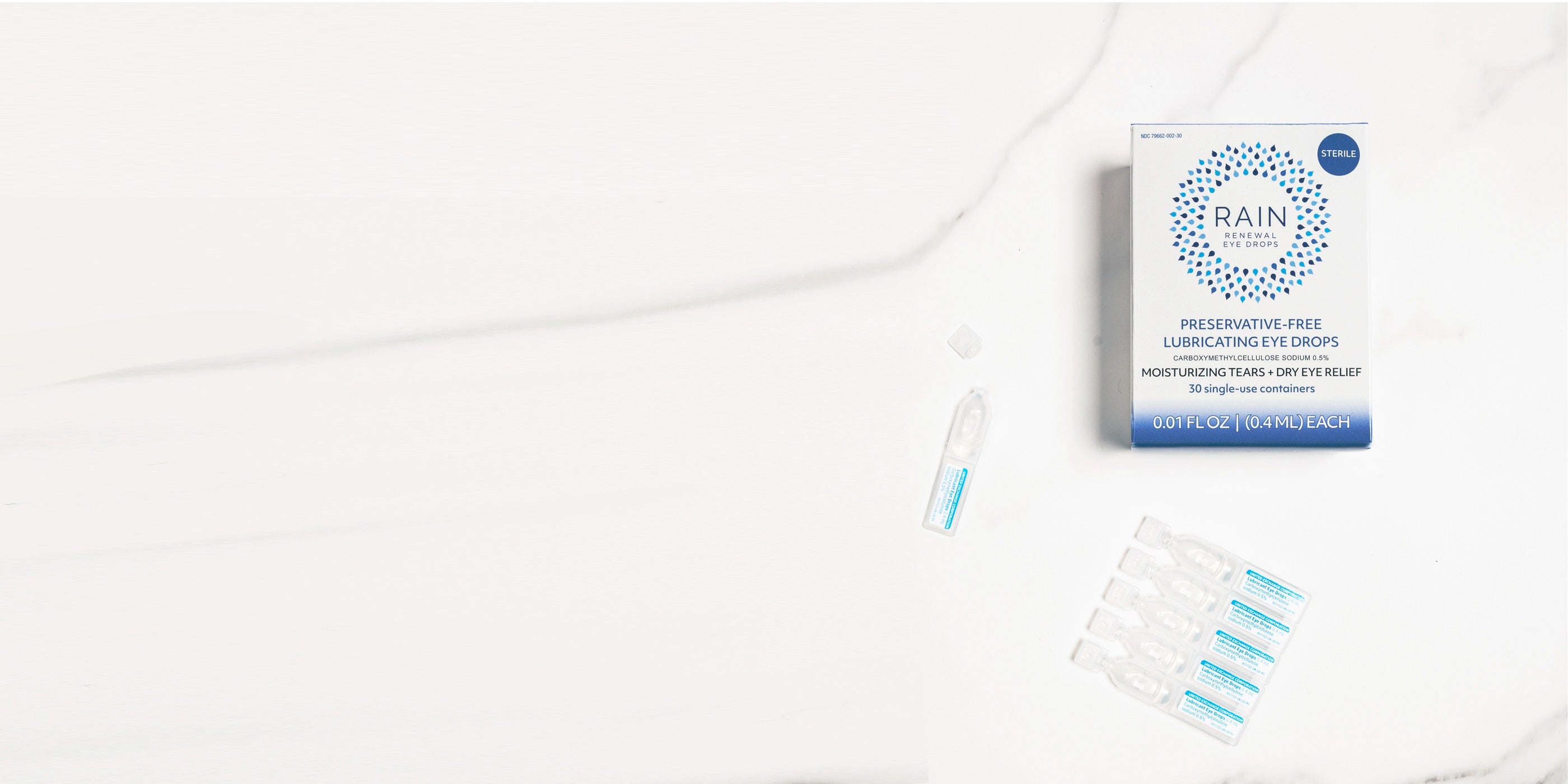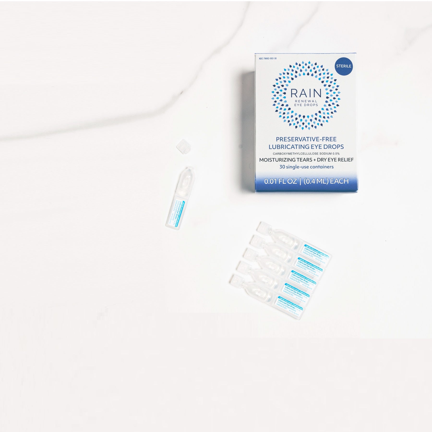 RAIN™ eye drops are completely preservative-free and with ZERO harsh chemicals or redness removers to simply hide dry eye problems. RAIN™ moisturizes the eye’s surface and promotes a natural balance of tears.